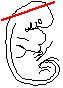 Al-7: Midbrain and hindbrain. The isthmus can be observed on A3-4 as a constriction between the mid- and hind-brain. The hindbrain is already subdivided into two parts, the slim myelencephalon and the wider metencephalon. The boundary between these two parts is roughly at the level of the otic vesicles A3-4.