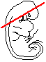 B1: Optic nerve. Note extensive temporal region of retina. Anlagen of nasolacrimal ducts.
