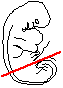 E3-E6: Small intestine. Loss of ventral attachment of mesentery to body wall as the two canals of I-E coelom open to the extra-embryonic coelom (chorionic sac). In E5 and E6, vitelline duct of yolk sac stalk is cut close to its attachment to the yolk sac in the embryo-embryonic coelom (yolk sac removed).
