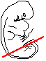 F1-F6: Gut loop extending caudally "up" into sacral region, attached by a dorsal mesentery. Separation of dorsal aorta.