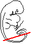 F1-F6: Gut loop extending caudally "up" into sacral region, attached by a dorsal mesentery. Separation of dorsal aorta.