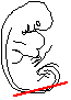G5: Tangential section through the rump of the embryo (neural tube cut twice). Youngsomites containing somitocoeles and consisting of dark, lateral dermomyotomes and more diffuse, medial sclerotomes. Notochord. Amnion and amniotic cavity.
