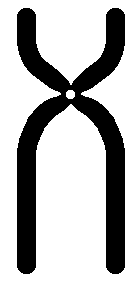 A diagram of a chromosome in metaphase is shown here. The chromatids are connected at the centromere. Each chromatid can be divided into a short arm (the "p" arm) and a long arm (the "q" arm).