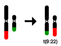 | Translocation | t | There is an exchange of material between arms on different chromosomes. The translocation is "reciprocal" if there is an exchange of two chromosome segments on different (nonhomologous) chromosomes. It is "balanced" if no genetic material is lost. "Unbalanced" translocations involve more breakpoints that lead to loss of genetic material in the exchange. Example: 46, XY, t(9;22)