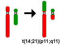 | Insertion | ins | There must be two break points in one chromosome that allow a segment to insert between a break point in another chromosome. Example: 46, XX, ins(11)(p14q23q24)