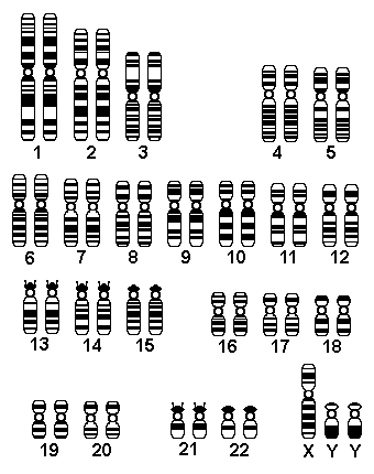 This diagram displays the 47, XYY karyotype of an XYY male. This occurs from a non-dysjunctional event in male meiosis. About 1 in 800 males is affected. Most are normal, but some can be tall, and a few are infertile from oligospermia.