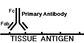 The tissue section is then incubated with the primary antibody, which will attach to any specific tissue antigen present as shown below: