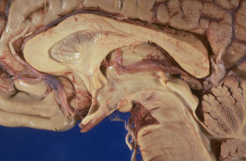 Anterior cerebral artery - Anterior commissure - Aqueduct of Sylvius - Foramen of Monro - Fourth ventricle - Mammillary body - Optic chiasm - Pineal gland - Posterior commissure - Septum pellucidum - Tectum of midbrain - Thalamus