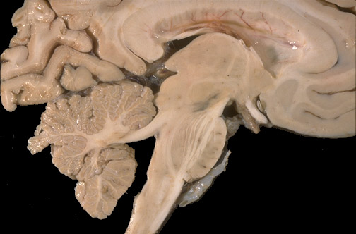 Cerebellum - Superior cerebellar peduncle - Pyramid of Medulla - Pons with Descending Corticospinal Tracts - Substantia Nigra - Pituitary Stalk - Optic Chiasm & Nerve - Head of Caudate Nucleus - Genu of Corpus Callosum - Fornix - Splenium of Corpus Callosum - Pulvinar of Thalamus - Superior Colliculus - Inferior Colliculus