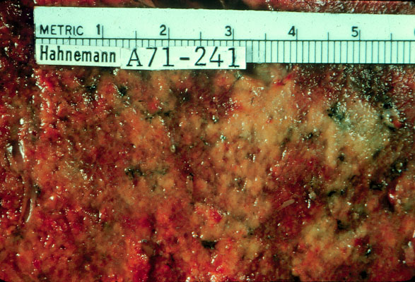 Acute bronchopneumonia, caused by bacterial invasion of lung parenchyma, is characterized by patchy consolidation of the lung. It usually represents an extension of pre-existing bronchitis or bronchiolitis, and thus consists of scattered foci of consolidation in the same or several lobes of lung.
