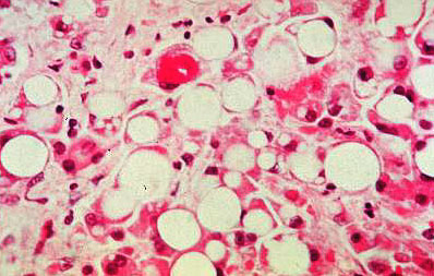Fatty liver in an alcoholic, histology.