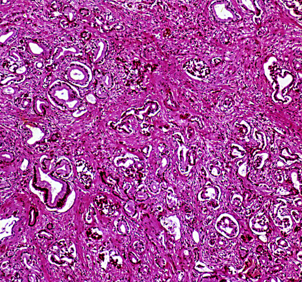 Chronic pancreatitis, Interstitial fibrosis with numerous benign small duct
