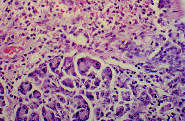 Acute edematous or interstitial pancreatitis, H&E.
