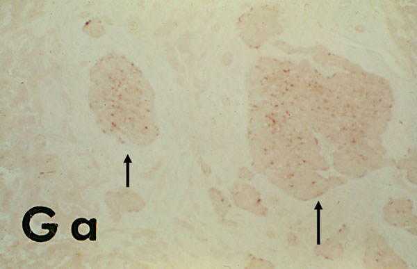 Liver metastasis of gastrinoma, immunostained for gastrin.