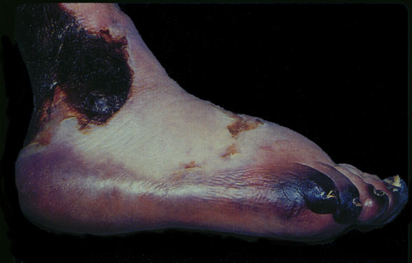 Gangrene in diabetic foot, gross.