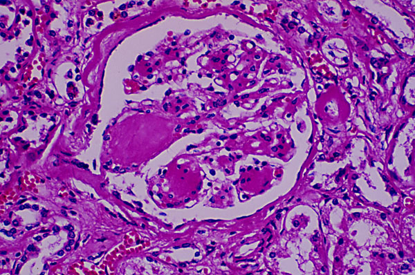Nodular sclerosis (Kimmelstiel-Wilson) with mesangeal