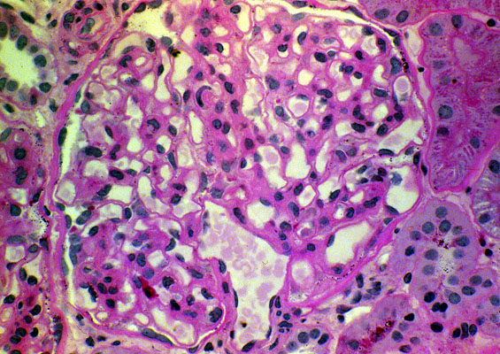 Mesangioproliferative glomerulonephritis, PAS stain