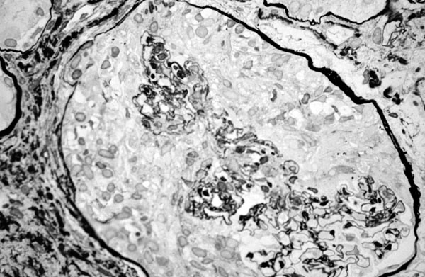 Wegener granulomatosis, glomerulus, Jones silver stain