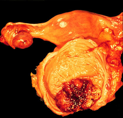 mass located in the trigonum. The uterus and the ovary positioned behind the urinary bladder appear normal.