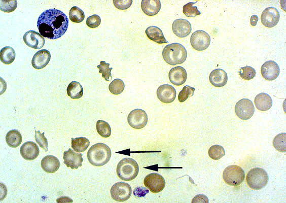 Target RBCs appear like a "bulls eye", and are formed by red cells with a relative excess of membrane. They are seen in thalassemia, some hemoglobinopathies and liver disease, as well as other disorders.