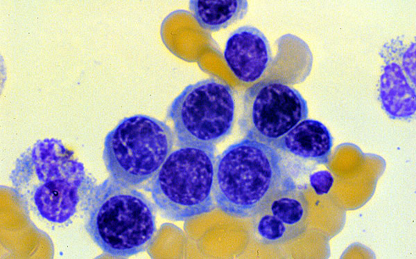 The bone marrow contains numerous erythroid precursors in all stages of maturation.
