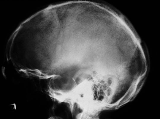 Similar case in vivo: Plain film (sagittal view) of skull shows ballooning of sella.