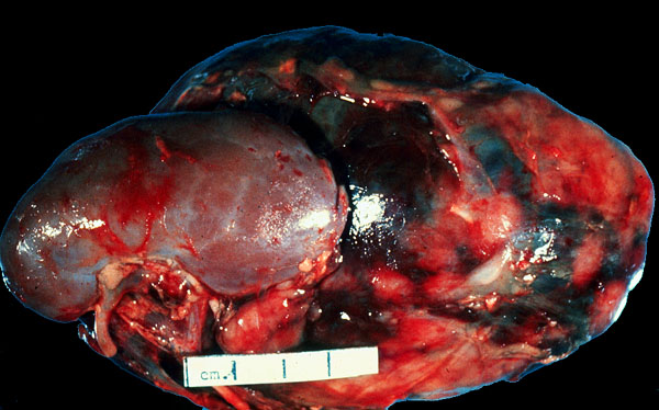 in a child, gross. A large, hemorrhagic