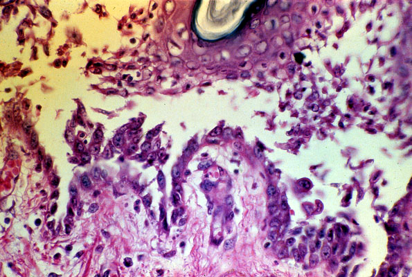 , micro, squamous cell are coming apart, acantholysis.