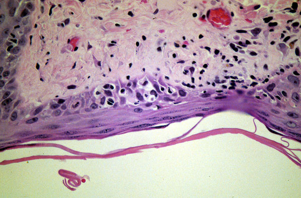 , micro, lymphocytes at the dermo-epidermal junction, vesicular