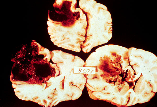 Multiple hemorrhagic abscesses caused by aspergillus in young girl who was immunosuppressed to accept a kidney transplant.
