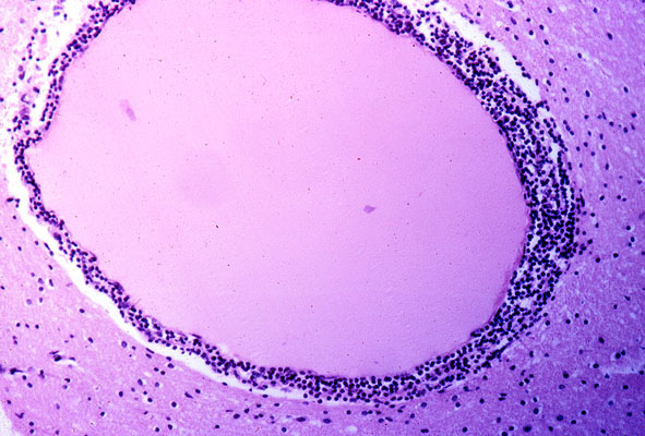 Same case, Perivascular lymphocytic infiltrates.