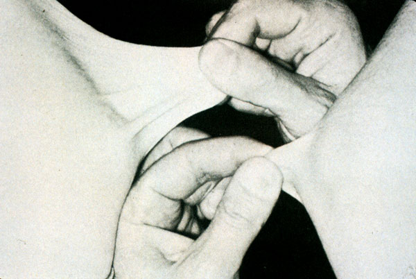 Hyperextensible skin of a patient with the Ehlers-Danlos syndrome. A heterogenous group of connective tissue diseases characterized by skin fragility, joing hypermobility and skin hyperextensibility.