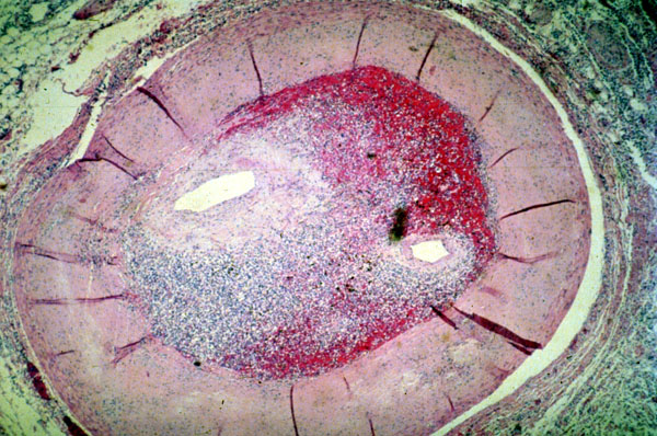 Reorganizing thrombus, coronary artery, H/E, x10