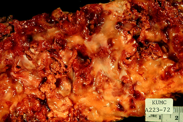 In severe atherosclerosis, plaques will occasionally break off and embolize throughout the arterial system. This may cause focal ischemia, especially in the gut, where GI bleeding may occur without any evidence of ulceration. Usually, this occurs only in the case of severe aortic atherosclerosis, as in this case.
