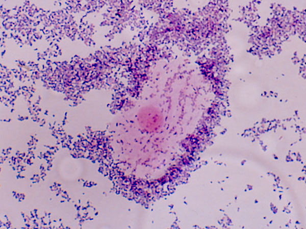 The diagnosis of bacterial vaginosis is usually made clinically, by finding of a watery discharge. Wet mounts may show Trichomonas, but if negative, a Gram stain should be done to rule out Gardnerella. The normal vaginal flora should have predominantly Lactobacilli. If these large Gram positive rods are not present, then a search should be made for "clue cells", sloughed epithelial cells coated with Gram-variable pleomorphic cocco-bacilli. This is sufficient evidence to diagnose infection with Garderella vaginalis. Culture is not necessary.