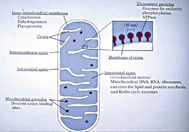 Micro 22. Blank Micro 23. Diagram of a mitochondrion (Ross and Romrell, Histology, 1989). Note the double membrane and the fact that the inner membrane is thrown into folds called cristae.