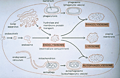 Micro 27. Diagram of degradation pathways. Utilize this diagram to understand the similarities and differences in the various pathways of the lysosomal system.