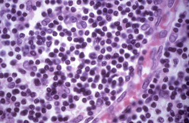 Micro 4. LM of lymph node. (Erlandsen and Magney, Human Histology: A Microfiche Atlas). Note the various sizes, shapes and staining densities of the nuclei in this light micrograph.