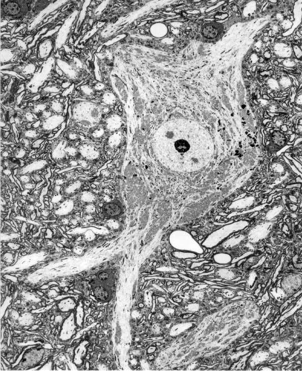 with the neuron. In the neuropil, can you differentiate the myelinated